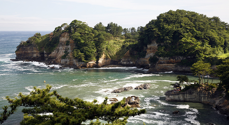 観瀾亭(かんらんてい)と名付けられた五浦六角堂は、仏堂、茶室を兼ねた東屋(あずまや)です。太平洋の荒々しい海を前にして静かに建ち、天心が読書や思索に耽った姿が彷彿として蘇ります。