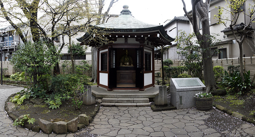 다이토구 야나카(구 야나카 하츠네쵸)에 있는 텐신의 저택터는 일본 미술원의 자취로서 「오카쿠라 텐신 기념공원」이 되었습니다. 벚꽃의 계절에는 분홍빛이 육각당을 물들입니다.