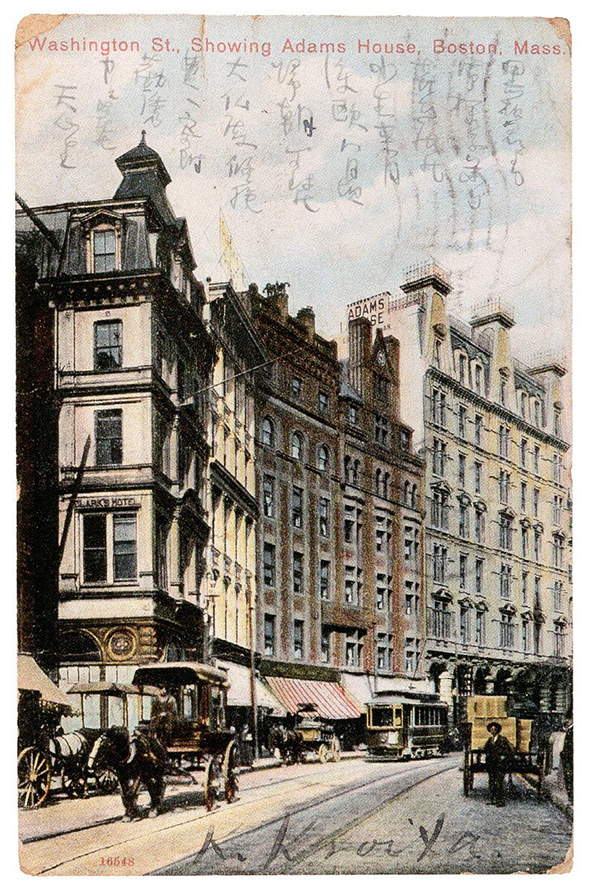이바라키현 이즈라로 옮긴 후의 서한. ‘히타치노쿠니 오즈마치 이즈라 오카쿠라 카쿠조’라고 쓰여 있습니다.