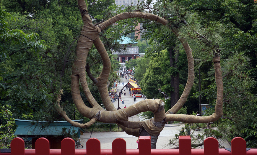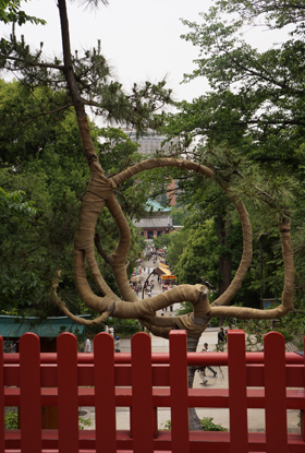 月之松,是江戶時代的花匠藝人運用獨特的造型技術栽種而成的,後來被複原的月之松,同樣是發揮了現代園藝造型的高超技藝的結晶。到訪的人們毫無察覺地從這裏經過,境內的邊上還種植著小型的月之松以供不時之需。