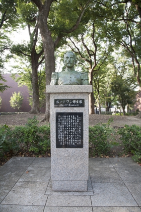 간에이지의 많은 가람은 메이지 원년(1868)의 보신 전쟁(우에노 전쟁) 때 많이 소실되었습니다. 그 터는 메이지 3년에 메이지 정부의 명으로 시찰한 네덜란드 군의인 보드윈의 제안으로 일본 최초의 공원으로 부활했습니다. 보드윈 박사는 우에노 공원의 창설자로서 쇼와 48년(1973)에 우에노 공원 안에 동상이 건립되었습니다. 하지만 첫 동상은 보드윈 박사의 형제 사진을 바탕으로 제작되었음에도 오랫동안 알려지지 않았습니다. 헤세이 18년(2006)에 보드윈의 사진을 바탕으로 새로이 동상이 제작되었습니다.