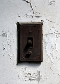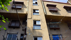 一号館は、1階に商店店舗スペースがあり、2階から4階は世帯用住宅となっています。二号館は、1階から3階が世帯用住戸、4階は単身者用住戸と共用の水場、トイレとなっています。関東大震災後の震災に備えた堅固なコンクリート造で、室内にも大きなコンクリートの梁がある簡素な構成となっていますが、ドアやドア・ノブ、電灯スイッチや欄間、そして一階の集会所となっている部屋の受付の窓を飾る格子等に大正、昭和初期のモダニズムが感じられます。
