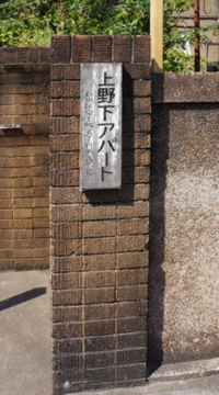 上野下アパートは、大正12年(1923)9月1日の関東大震災後の復興事業のひとつとして設立された財団法人同潤会により建設されたアパートメントハウスのひとつです。同潤会は、大正13年(1924)から昭和16年(1941)の18年間に鉄筋コンクリート造のアパートメントハウス16棟を建設しました。上野下アパートは、昭和4年(1929)に、下谷区(現台東区東上野5丁目)に建設されました。他の同潤会アパートが、次々と解体、建て替えされる中、84年の歴史を有し唯一残存するアパートでしたが、老朽化に伴い昭和末期から始まった建て替えの検討を経て、いよいよ建て替えられる事になりました。今年平成25年(2013)6月から解体が始まり、平成27年(2015)夏には、地上14階建ての商業・住宅ビルとして生まれ変わる予定です。