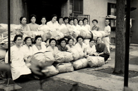 上野下公寓婦女會,拍攝于公寓前