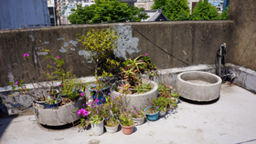 在屋頂上,有洗東西用的水泥洗水池。